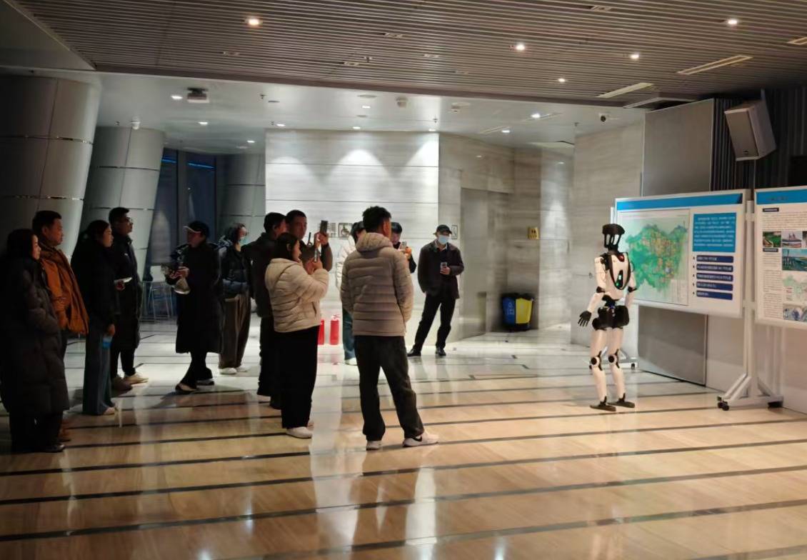 王松表示,“小益”诞生于郑东新区中原科技城,将它部署在城市观光厅,不仅能协助展厅工作人员承担简单的讲解、与游客互动的工作任务,还能让游客亲身体会到郑东新区的科技魅力。